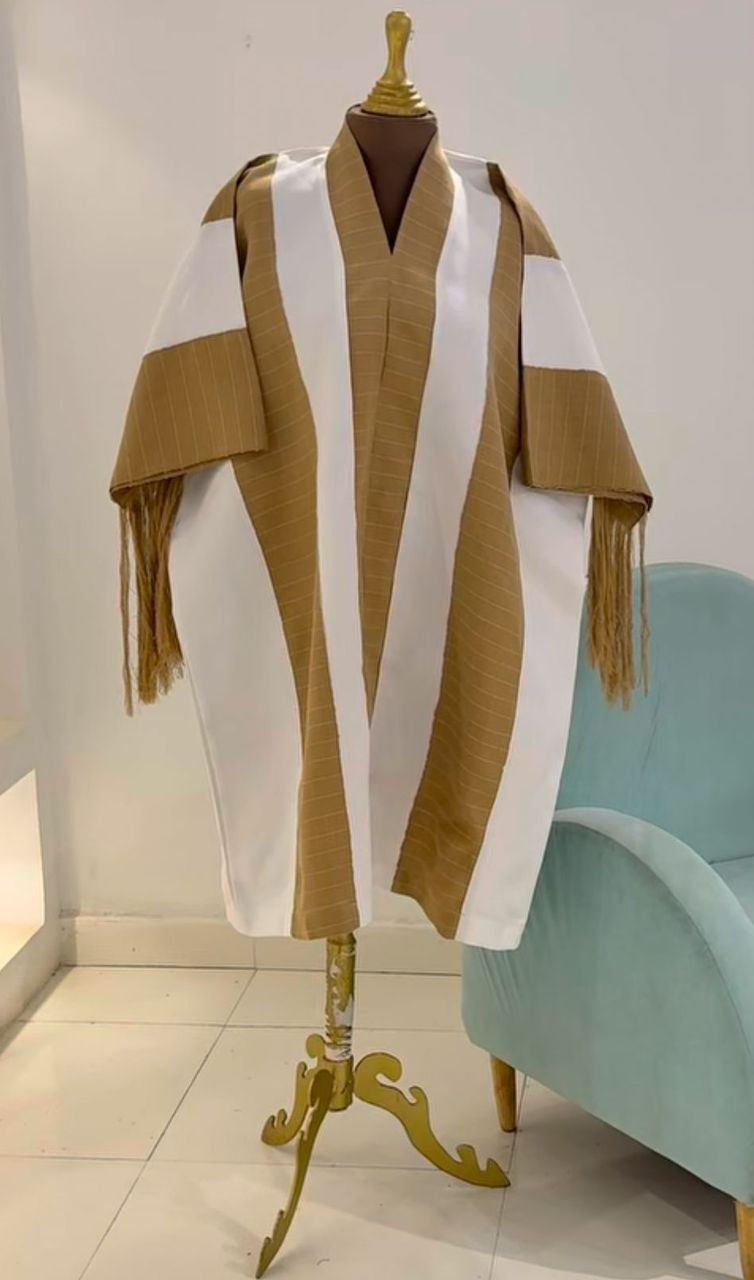 The wide sleeves are finished with tassel-like fringe details, adding texture and fluid movement, while the oversized drape ensures comfort and effortless layering. Perfect as a luxury outerwear piece, the kimono combines traditional design with contemporary tailoring—ideal for formal occasions, cultural events, or upscale casual styling.